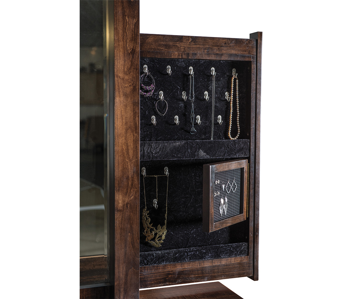 • Jewelry slide out behind mirror