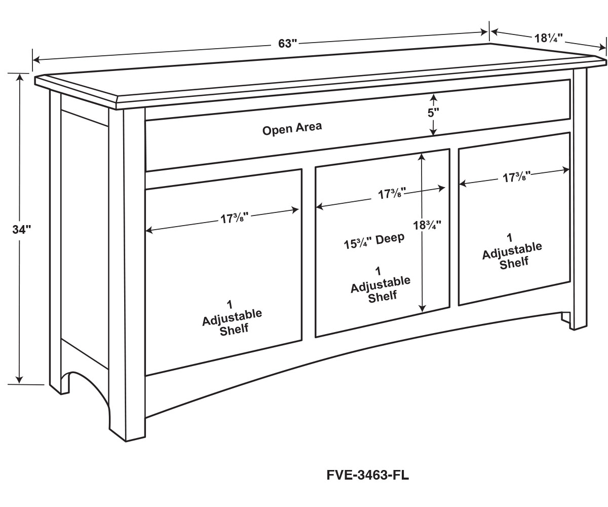Dimensions: 63″W x 18¼”D x 34″H