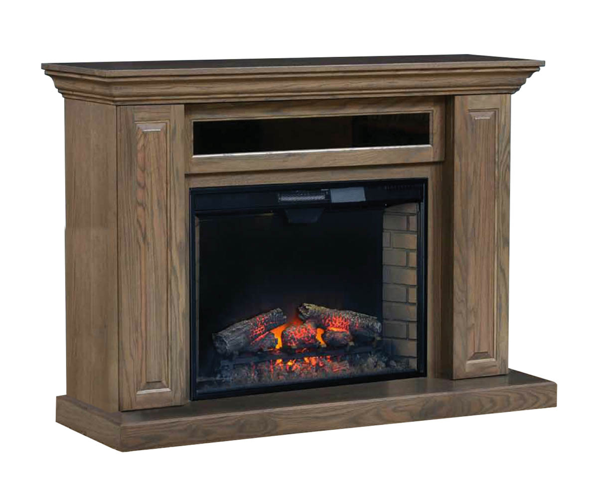 • Side panel doors for storage on each side of the fireplace