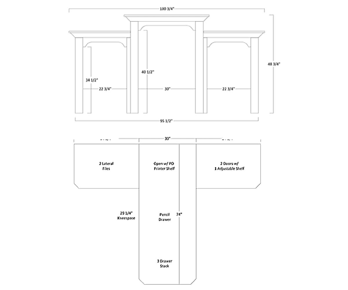 Desk: 98″W x 74″D x 30½”H