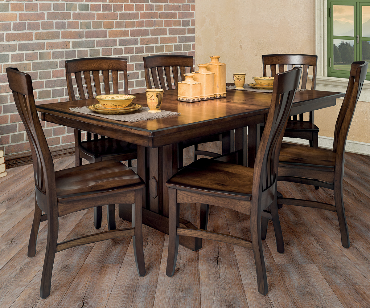 Square corner top with 1⁄2″ beveled edge. Richland chairs.
