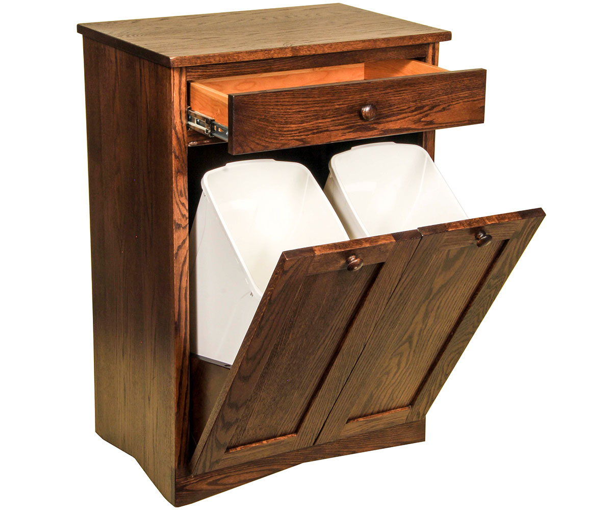 • Two tilt out trash bins to make for easy recycling