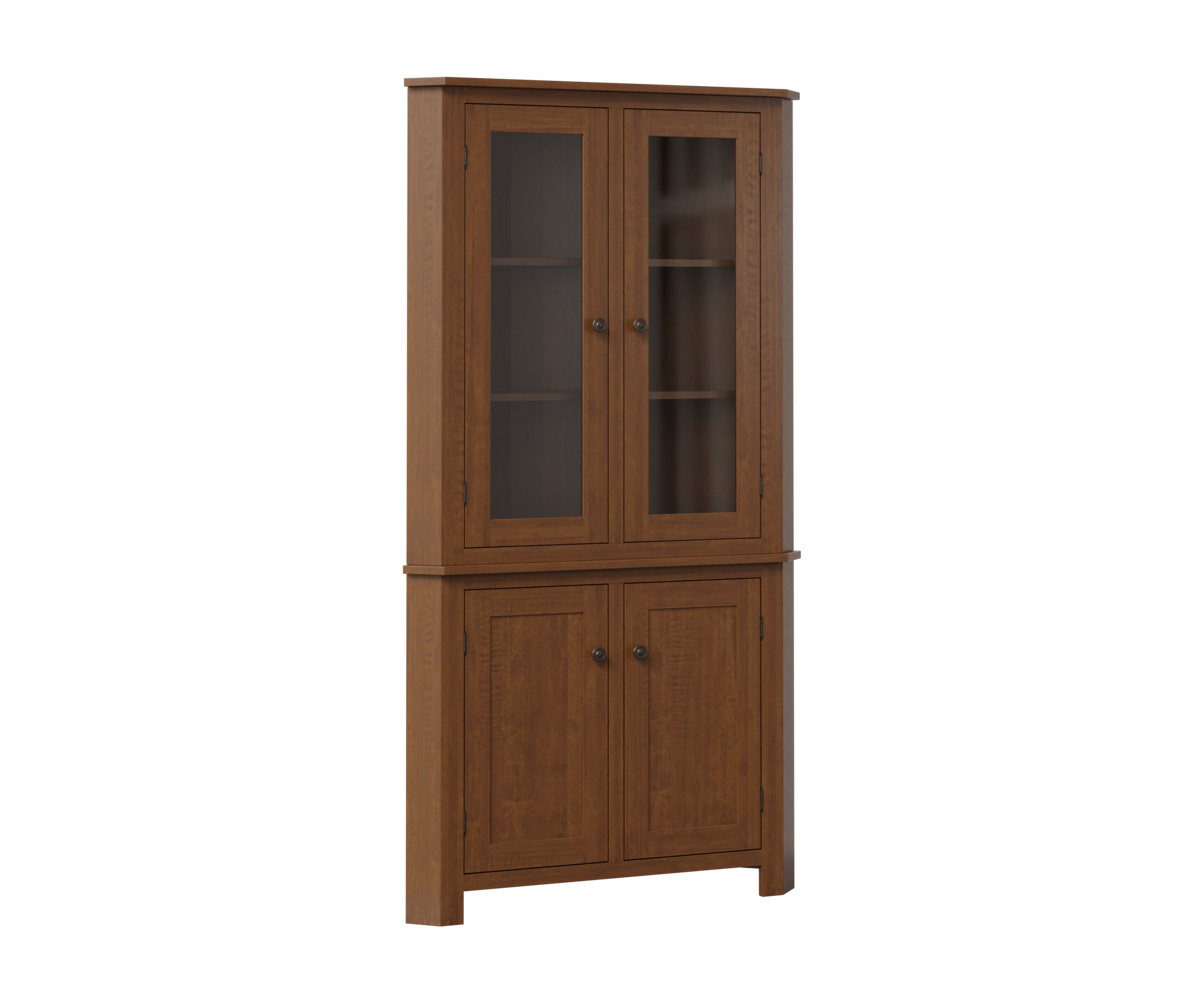 • Glass shelves in place of the wood shelves